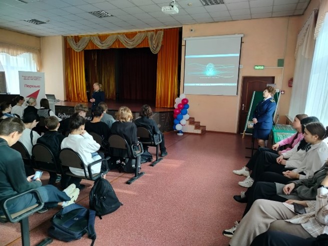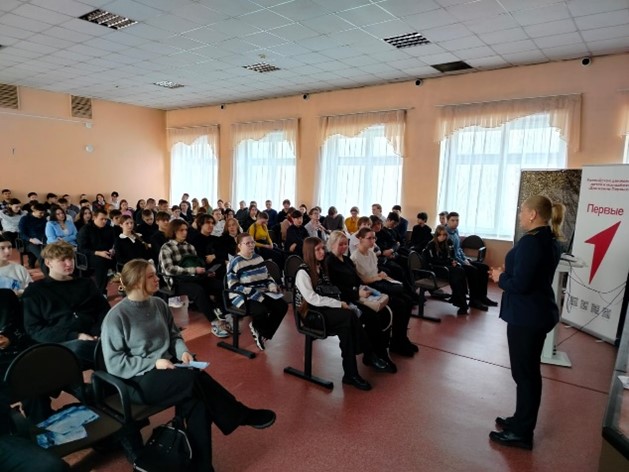 Вниманию обучающихся 9-11 классов была представлена презентация филиала, информация об условиях поступления, об организации учебного процесса, возможностях, которые предоставляются курсантам и студентам, о карьерных перспективах.