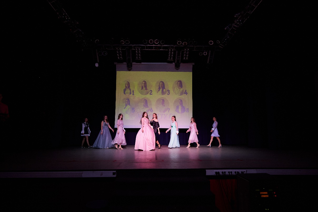 В этом году в конкурсе приняли участие 8 ярких, оригинальных и талантливых девушек. Конкурсантки боролись за звание самой красивой и талантливой девушки ВУЗа. Поддержать участниц творческого конкурса, который проходил 18 апреля 2023 года в зрительном зале клуба Орбита, пришли одногруппники, однокурсники, преподаватели, друзья и родственники.