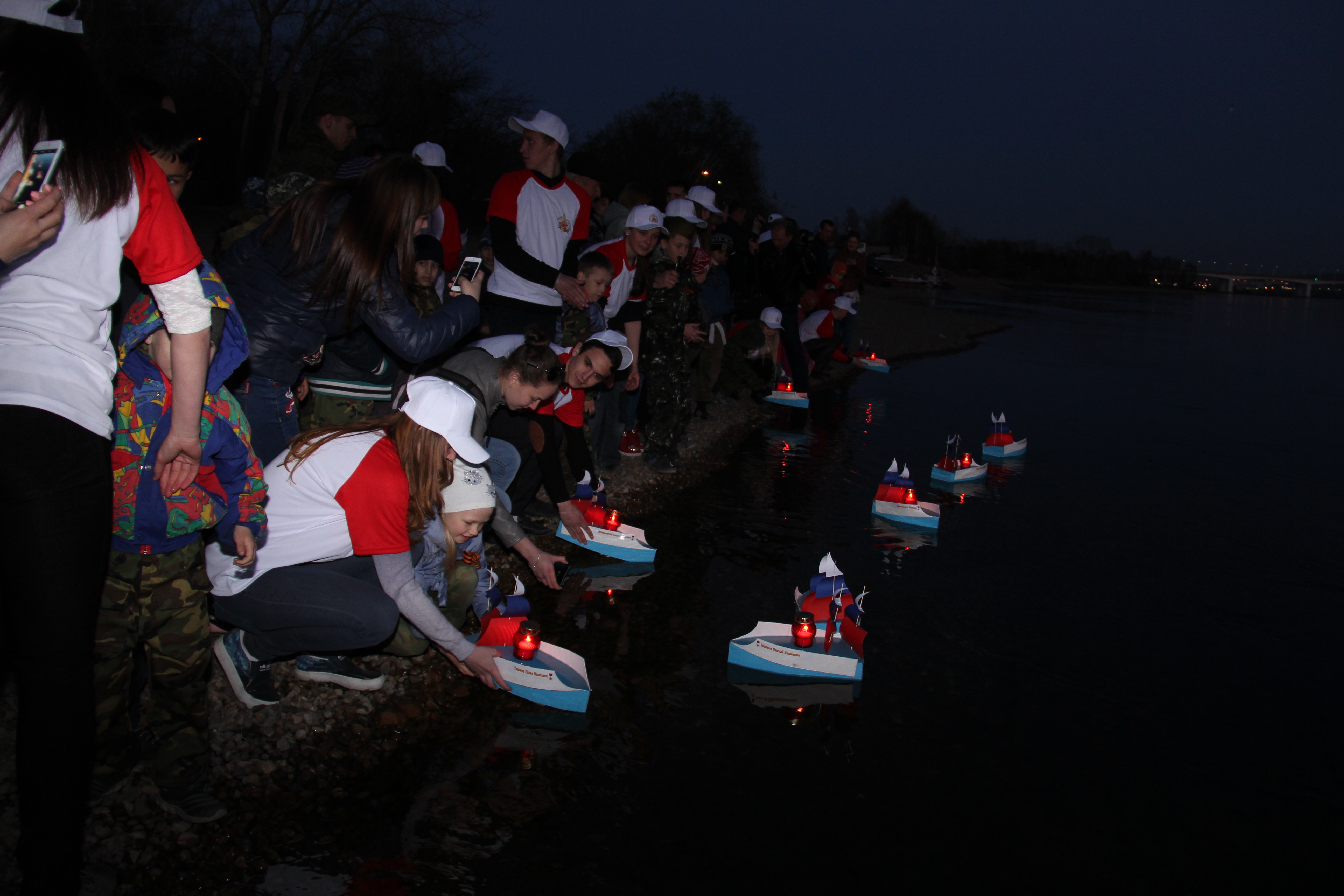 Студенты и курсанты филиала в момент исполнения песни «За Победу» производили запуск 200 воздушных шаров в память 200 000 Иркутян, ушедших на фронт Великой Отечественной войны, а также участвовали в спуске моделей именных судов с лампадками на борту, в память об Иркутянах - героях Советского Союза.