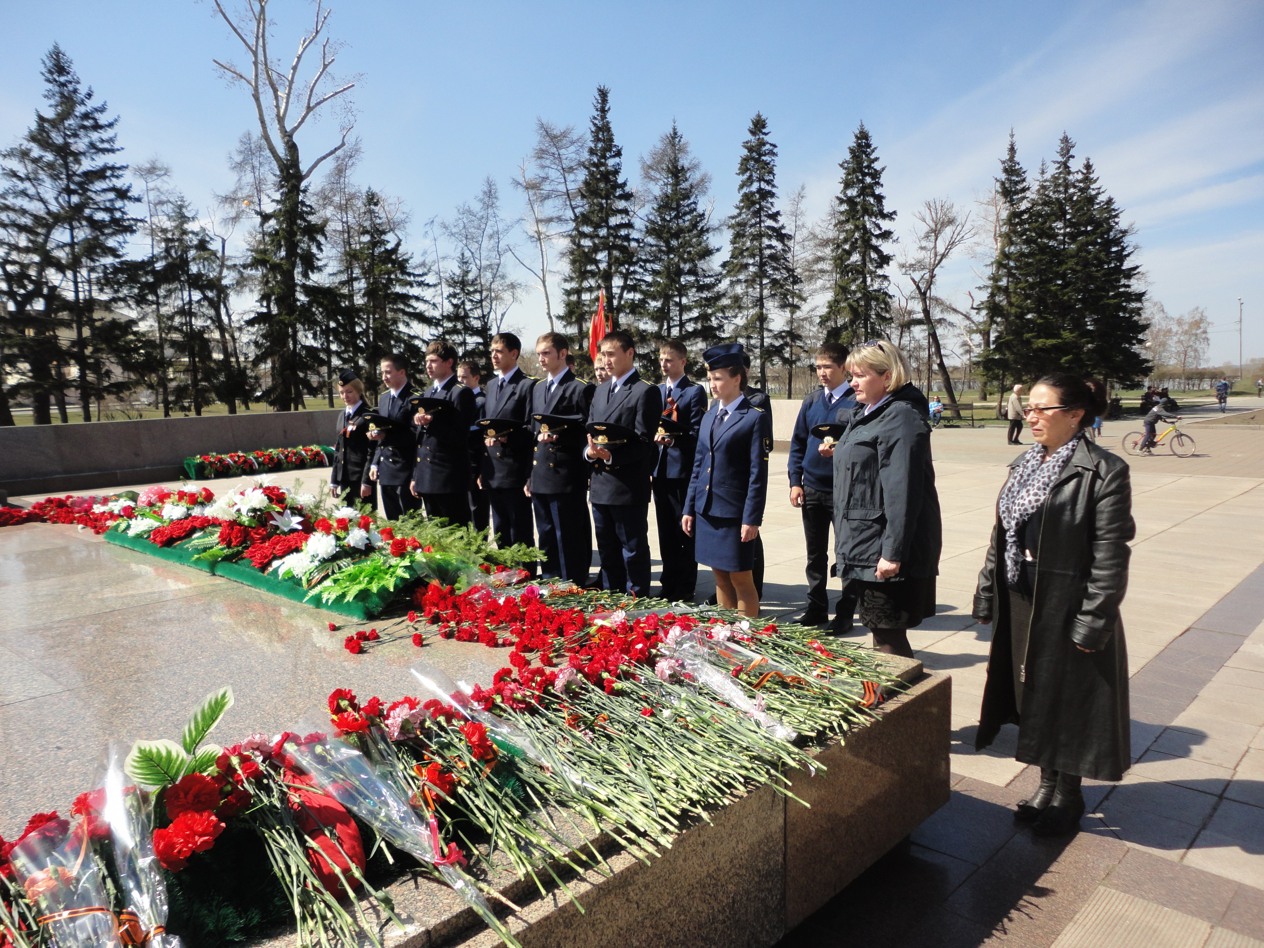 В преддверии празднования Великой Победы 6 мая 2016 г. студенты и курсанты Иркутского филиала МГТУ ГА отдали дань героям Великой Отечественной войны, возложили гирлянду Славы к мемориалу Вечного огня.