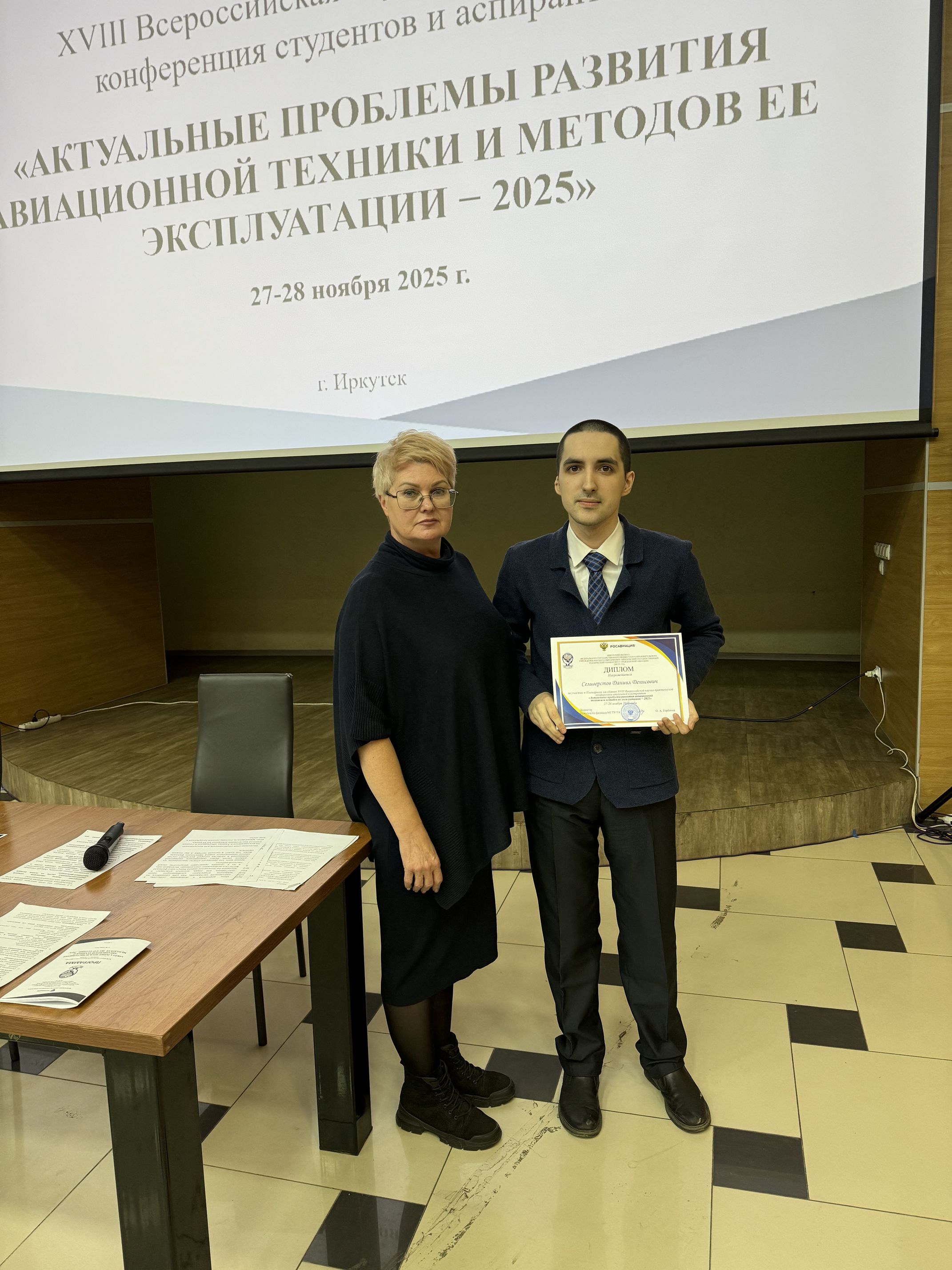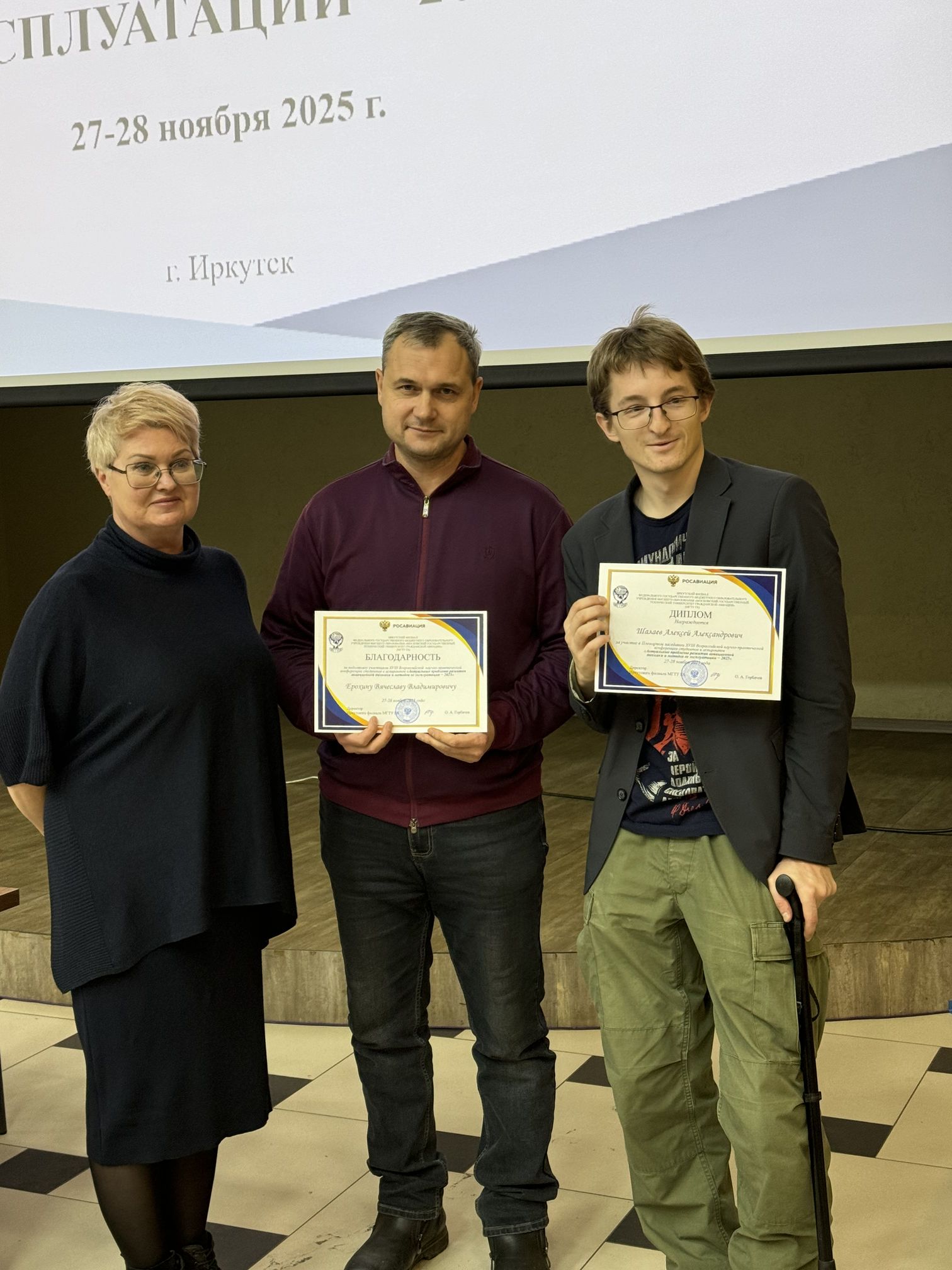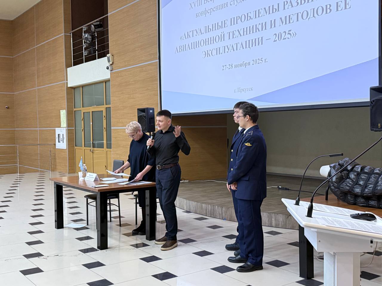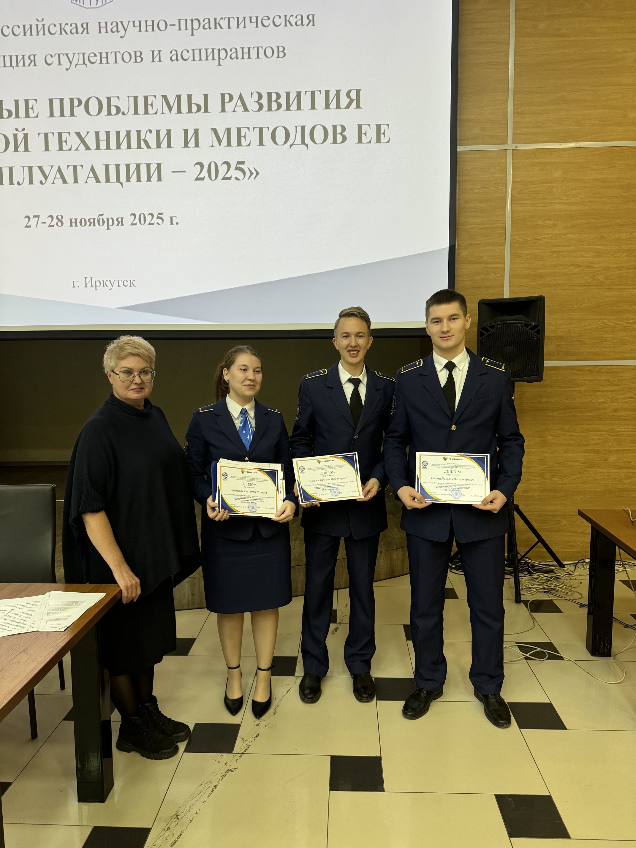 27 ноября 2025 г. под председательством Вишняковой Алены Александровны, заведующей кафедрой ОПиУТ состоялось Пленарное заседание XVIII Всероссийской научно-практической конференции студентов и аспирантов «Актуальные проблемы развития авиационной техники и методов ее эксплуатации – 2025». С приветственным словом выступил директор Иркутского филиала МГТУ ГА, доктор технических наук, профессор Горбачев Олег Анатольевич.