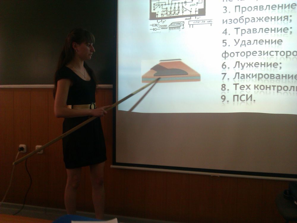 30.05.2014 студентка Хлыстова А. рассказывает технологию изготовления и испытания УНЧ на УУППО